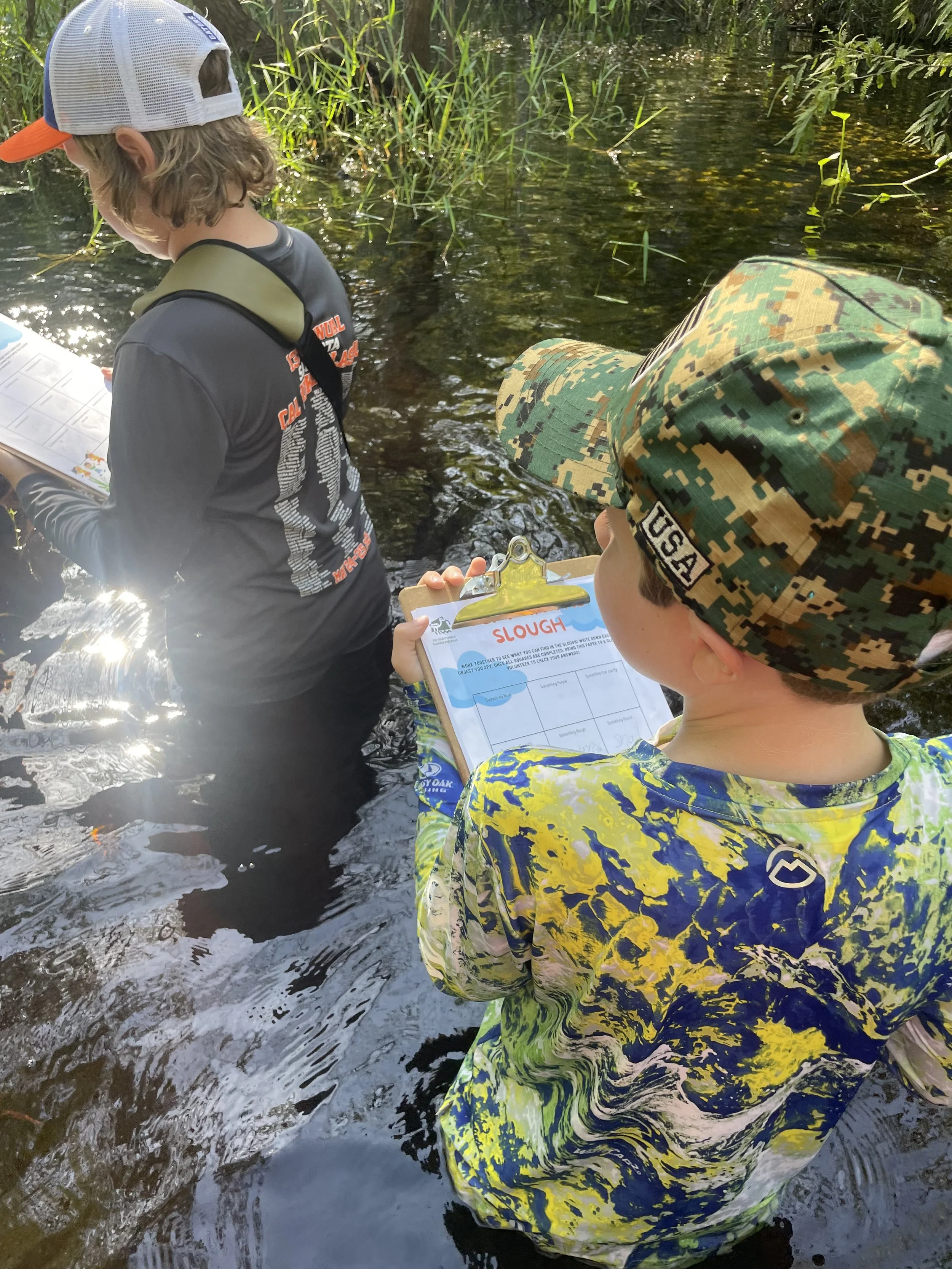 On this walk, children (8-11 years old) were introduced to the Slough ‘s magical wet walk, while enjoying activities like a “I Spy”, sensory activities, silent walk, and dip netting.